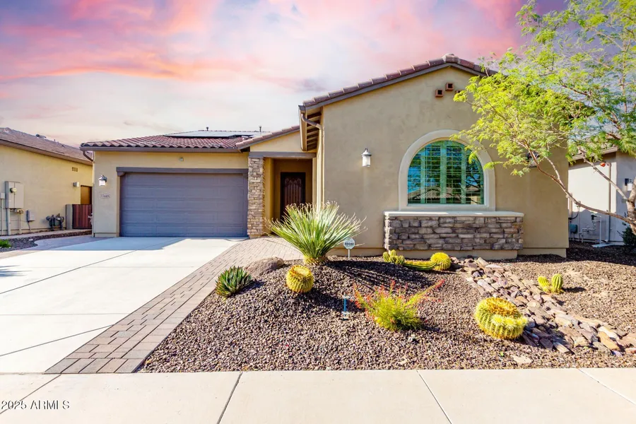 Welcome to your own private retreat in the prestigious Trilogy at Vistancia. This beautifully designed 2019 home offers soaring ceilings, a stunning chef's kitchen, open floor plan & expansive windows that flood the interior with natural light. The kitchen features granite counters, wall oven, and gas cooktop built into the island. The thoughtfully landscaped backyard provides the perfect balance of sunshine and shade, ideal for relaxing or entertaining, and complete w/ bronze fountain! Inside, you'll find two spacious bedrooms plus a versatile den that can easily serve as a guest room or home office. The luxurious master suite features an extended sitting area that creates a tranquil retreat. Bonus! Paid for solar, means low electric bills for years to come. Photos virtually staged