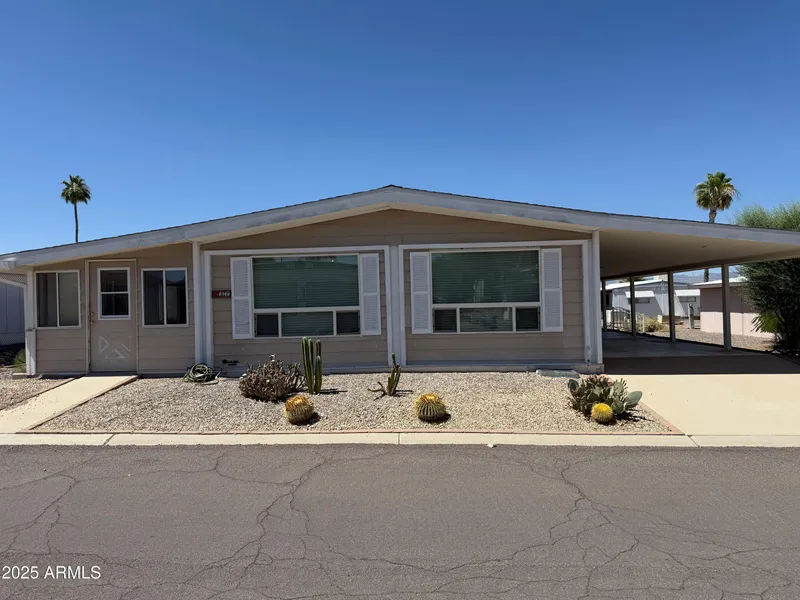 This spacious 2-bedroom, 2-bathroom home offers a functional layout w/plenty of room and storage. Enjoy spacious living and dining areas, a cozy den, and laundry room. The star feature of this property is the Arizona Room—spanning an impressive 60 feet in total length. The front section features linoleum flooring and serves as a bright extension of the main entrance, while the rear section is finished with outdoor carpet, perfect for hobbies, storage, or relaxing. It includes a large storage shed and a covered carport with space for two vehicles. While this home is older it boasts solid bones and great potential to become a wonderful year-round residence or winter retreat. With a little vision and care, this could be your perfect home!