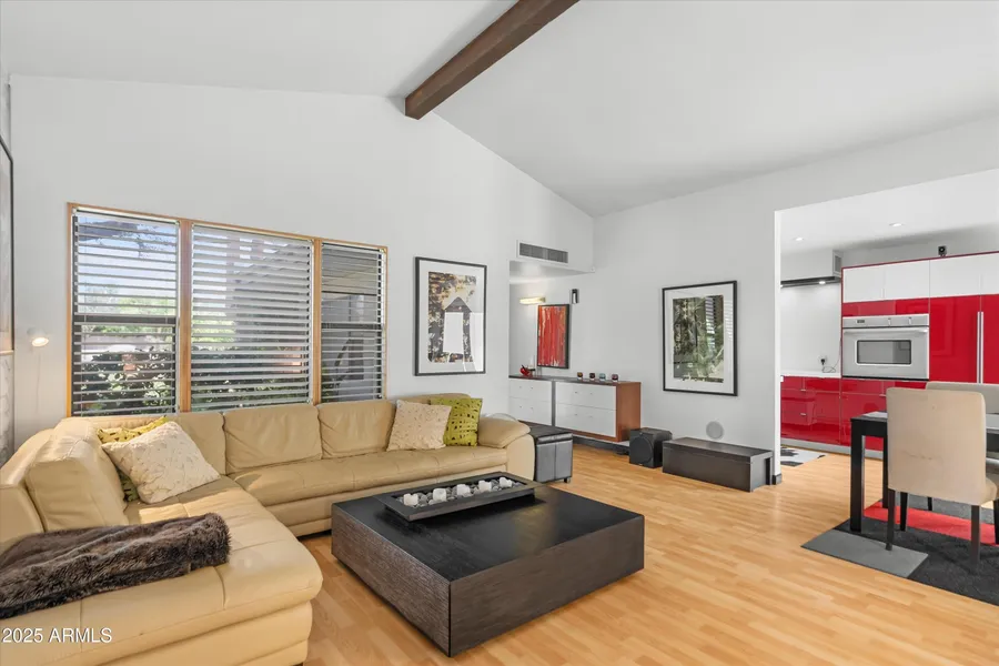 Rare Opportunity For Best Patio Home in Prime Old Town Scottsdale! This artist-designed patio home with a Spacious floor plan is just steps from Fashion Square Mall, placing world-class dining, luxury shopping, and vibrant nightlife right at your doorstep. Nestled in a 24 hr guard gated community, the home showcases soaring vaulted ceilings, inside laundry, and a striking contemporary mid-century modern design and Natural light pours into the open-concept layout, seamlessly blending indoor comfort with outdoor living on large private patio. Whether you're seeking a stylish full-time home or the perfect seasonal retreat, this one-of-a-kind gem offers the best of Scottsdale living—walkable, finest of Upgrades, and completely move-in ready. Must See.. Will Not Last Long!