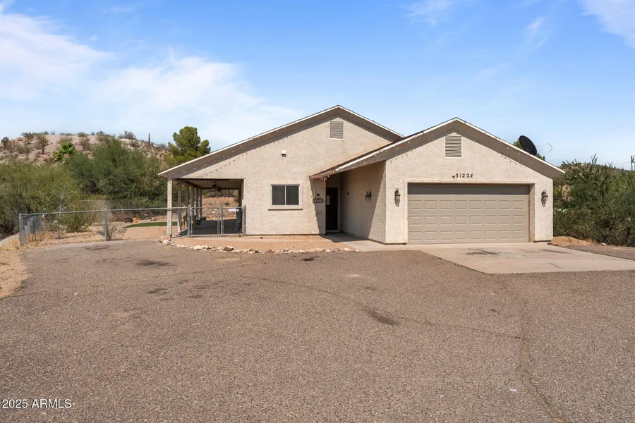Welcome home to this awesome horse property. 3 BR 2 bath home on a lrg lot was built in 2000 & is located w/ a country feel but only minutes from all the conveniences & amenities that Wickenburg has to offer. The home offers a well-appointed kitchen w/ all appliances to convey, a dining area w/ doors to the patio, Living Rm w/ gas F/P, den w/ large closet (4th bedroom??) & 3 BRs & 2 baths. The Mstr BR is lrg w/ a separate exit to the rear, laminate flooring & the Master Bath has dbl sinks, private toilet room & separate shower & jetted tub. The 1 ac property has a roomy driveway w/ home & garage at the top. Then head down the private drive to a level area w/ fencing, a horse shade & strg bldg/tack room. Up topside, relax on the covered patio & enjoy mountain views & watch the horses!