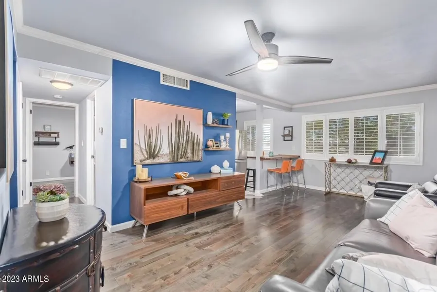 Look no further, this is your chance to live in north central Phoenix while keeping your costs to a minimum! Excellent Co-operative community with immediate access to I17, close to GCU. This home is upstairs, one bedroom, one bathroom, with a bonus room currently used as a nursery. This unit is located in the Edgewater community Bethany Crest Cooperative. The unit has been fully remodeled. Updates include wood flooring, tile, updated kitchen cabinets, Quartz counter tops, stainless steel appliances, and plantation shutters throughout. Also included is covered assigned parking space. This community takes great pride in security and grounds Maintenace, community has new roof, gated entry, sparkling community pool and laundry facilities. Very affordable carrying charge includes water, sewer, trash, replacement and repair, street Maintenace, common area Maintenace. Cash buyers only. Sale is contingent upon Co-op board approval which includes credit check, background check and in person Interview. 1000$ transfer fee, no rental policy, owner occupied only, Small dog or cat allowed. One of the most affordable places in Phoenix.