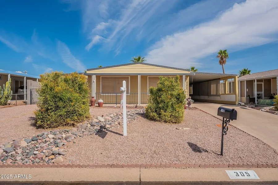 Beautifully remodeled home with lots of style and charm. Your clients will appreciate the numerous upgrades that make this home shine. New interior paint, the exterior siding was removed, and the home was wrapped in a durable cement siding. The kitchen has been upgraded and includes newer kitchen cabinets, upgraded flooring and countertops. The bathrooms look amazing and have newer shower and countertops. Enjoy comfort with a new AC unit, newer light fixtures throughout, and updated flooring that extends into the Arizona Room. Additional features include a gas range/oven, dual-pane windows and a long-lasting metal roof. Property offers a workshop and storage rooms, with most furnishings included pet-friendly community. Located in a vibrant 55+ active community with endless amenities: two bowling leagues, RV camping groups, bocce ball, horseshoes, pickleball, swimming pool, spa, billiards, library, and more. Conveniently close to Superstition Springs Mall, dining, golf courses, and Banner Baywood Hospital.