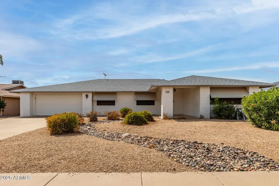 Charming Home in the Sought-After Sun City 55+ Community! This spacious home offers an excellent layout in the popular Sun City 55+ community. With vaulted ceilings, soft neutral tones, and built-in library shelves, it feels both open and inviting. Enjoy the flexibility of a separate family room and a formal living area, ideal for entertaining or quiet relaxation. A large laundry/craft room provides plenty of space for hobbies and storage. The generous primary suite includes a walk-in closet, dual sinks, and a step-in shower for added convenience. Recent updates include brand new appliances, adding peace of mind for the next homeowner. With great bones and fantastic potential, this property is ready for your vision] fresh paint, new carpet, and updating will make it shine.