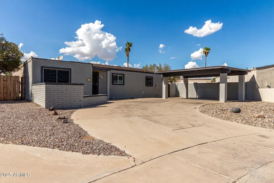 Welcome to this beautifully updated 3-bed, 2-bath home, offering 1,492 sq. ft. of stylish living, a large corner lot and NO HOA! Step inside to soaring vaulted ceilings and an open floor plan highlighted by modern plank tile flooring throughout. The kitchen boasts granite countertops, a custom backsplash, stainless steel appliances, and a convenient mobile island--perfect for everyday living and entertaining. The spacious primary bedroom includes a closet and private en suite bath. The included refrigerator w/6 month warranty, dryer and newer washer make this home truly move-in ready. Step out back to a spacious backyard, ready for your personal touch. Enjoy the 2-car carport, and a long driveway with room for six cars total! With easy access to the 101 and I-10 freeways, and ideally located near shopping, dining, schools, and recreation, this home has it all!