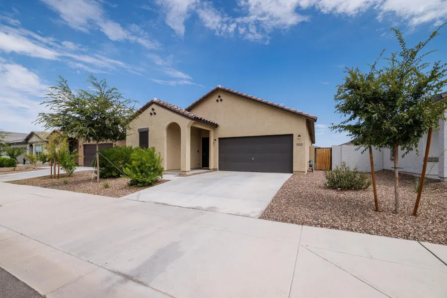 This move-in ready home offers more high-end upgrades than any new build and stands out as the only east/west orientation available—providing a shaded backyard to enjoy Phoenix evenings year-round. Thoughtfully improved with a whole-home water softener, reverse osmosis system, 220V garage outlet (for EV charging, power tools, or appliances), solar sunscreens, upgraded faucets and fixtures, window coverings throughout, and an included washer, dryer, and 3-door refrigerator. The backyard is fully finished with turf, professional landscaping, and a covered patio. Come see it today!