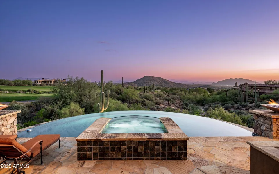 Welcome to this Exceptional Private Desert Mountain Estate - A Masterpiece of Luxury Living Nestled in one of Desert Mountain's most coveted enclaves, this exceptional estate is a true testament to uncompromising quality, artisan craftsmanship, and refined design. Every inch of this home exudes sophistication, offering an unparalleled lifestyle. As you enter the gated entry, you're greeted by lush desert landscaping, mature trees, and indigenous plants that provide both beauty and privacy. This home commands attention without shouting-offering an oasis that is both serene and awe-inspiring. Step through the grand entryway into a world of elegance. The expansive open-plan living area features soaring ceilings, where light pours in through the doors perfectly framing panoramic views of the surrounding mountains and desert. The home's craftsmanship and attention to detail are immediately evident in every corner: custom beam work, soft Venetian plaster, warm hardwood floors, natural stone and brick accents all seamlessly flow throughout the space. Neutral tones create a serene atmosphere that invites both calm and sophistication, making every room feel like a sanctuary. The dining and living area are entertainer's dream, with well appointed wet bar and the striking fireplace that serves as a focal point, creating a warm and inviting atmosphere. The wine room offers ample space for storing your finest collection. The heart of this estate is undoubtedly the gourmet kitchen, a chef's dream featuring top-tier appliances, a generous center island, and custom cabinetry. Whether preparing a quiet dinner or hosting an elegant gathering, this kitchen is designed to rise to any occasion. The kitchen flows effortlessly into the adjacent open-plan living area, where a fireplace provides warmth on cooler evenings. Sliding doors retract to reveal the outdoor sanctuary, blending the indoors with Arizona's natural beauty. The private library, an inviting space for both work and leisure. With custom-built bookshelves and ample natural light, this tranquil room includes dual desks and double doors to patio with expansive views. The owner's suite is a private haven designed for relaxation and rejuvenation. Featuring large fireplace, a spa-like bathroom, walk-in closet, and thoughtful finishes, this sanctuary also boasts breathtaking views of the mountains and valley. The dual-owner's suite, complete with its own fireplace, sumptuous bath, and private patio, offers your guest the ultimate in luxury living and privacy. Additional guest en-suite are equally spacious and well-appointed with private balconies perfect for family, guests, or for transforming into a creative space. Every inch of this estate has been designed with both comfort and style in mind, ensuring every family member and guest feels like royalty. This homes resort-style backyard truly sets it apart, from the sparkling pool and spa to outdoor kitchen with top tier BBQ and refrigerator, fire pit patio to the cozy dining patio with smoker and fireplace every detail has been designed to enhance your lifestyle and to create an entertainer's paradise. Surrounded by lush desert landscaping offering breathtaking views of the Sonoran Desert, golf course, mountains and valley below this space offers the perfect blend of privacy and is the perfect setting for al fresco dining, intimate gatherings, or simply unwinding in nature. Saguaro Forest 165 was designed by Terry Kilbane, built by Madison Couturier, and is made for a life well-lived. This estate is more than just a home; it's a story... one that you'll love living every day. For those who appreciate both functionality and luxury, the three-car garage provides ample space for your vehicles, tons of storage to meet all your needs, air station and also features an air-conditioned exercise room, perfect for a home gym, yoga studio, or personal fitness space. Crestron system allows you to control home both while in residence or away from home. A