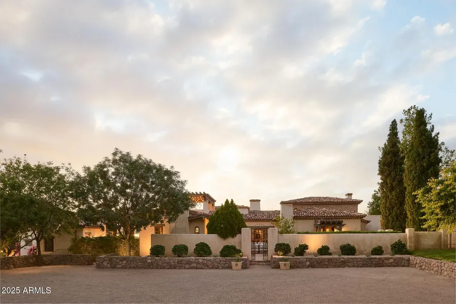The enchanting grounds feature multiple private courtyards, a vegetable and herb garden, 8 fireplaces, an exterior fire pit, a private, heated pool with a charming poolside ramada, and a 5,000-bottle-capacity wine cellar. Designed for both entertaining and intimate gatherings, the formal dining room offers a private courtyard view and direct access to the wine cellar, while the butler's pantry conveniently connects the kitchen and dining areas. The chef's kitchen is a culinary dream, featuring top-of-the-line Wolf appliances: a six-burner plus griddle double oven range, a steam oven and a Sub-Zero refrigerator/freezer. A dedicated coffee station includes a Miele in-wall espresso system and warming drawer for morning indulgence. The luxurious primary suite overlooks the lush grounds and private patio, with a serene window bench nook. The spa-like primary bath boasts a spacious walk-in shower, standalone tub, dual vanities, and 2 separate fully renovated oversized closets. Additional bedrooms offer walk-in closets and scenic mountain views, providing comfort and privacy. From Venetian plaster walls and rough-hewn ceiling beams to custom European millwork, every detail radiates Old World charm and enduring elegance. With room to expand or personalize further, this is a residence where artistry, sophistication, and modern comforts come together in perfect harmony.