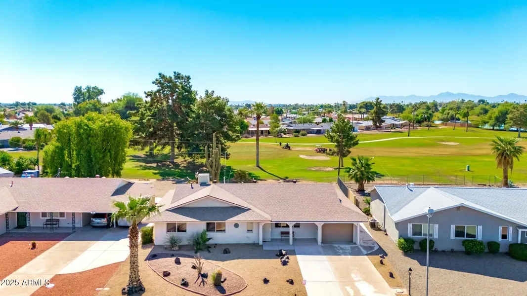 What a gem in Sun City! This home sits on a prime north/south golf course lot with incredible views of the 15th green, and the driveway gives you direct access to the course. It's a golfer's dream! Inside, you'll find a fresh remodel with timeless, modern touches. The kitchen and bathrooms feature white shaker cabinets, granite counters, under-mount sinks, updated faucets, and designer lighting. Throughout the home, you'll love the plank wood-style tile floors, new doors, fresh paint, sleek hardware, and stainless steel appliances. Major updates give you peace of mind, including a recently replaced A/C, newer dual pane Low-E windows, and a newer dimensional roof. Relax or entertain on the massive covered patio overlooking the green, and take advantage of the spacious utility room with golf cart parking. This home brings together comfort, style, and the Sun City lifestyle you've been looking for. Opportunities like this don't come along often, make it yours today!
