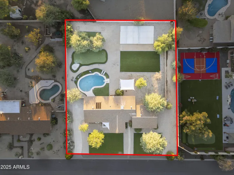 Inside, discover a beautifully remodeled home designed for both grand entertaining and serene everyday living. The expansive layout is bathed in natural light and crafted with thoughtful finishes throughout. Step outdoors to your own paradise retreat—a resort-style backyard featuring a sparkling pool, sports court, lush entertaining space, and endless room to create your Sonoran dream lifestyle. Sunset skies paint the desert horizon each evening, offering unmatched tranquility. Whether you envision building a bespoke luxury estate or enjoying the home as it stands, the possibilities are endless. Fully set up for use as a short-term rental (with furniture available under separate agreement), this is truly a rare chance to own one of 85254's finest addresses. Prime Location - Just a few short minutes from Kierland Commons and Scottsdale Quarter, with dining, shopping, and entertainment at your fingertips. Your private desert paradise awaits.