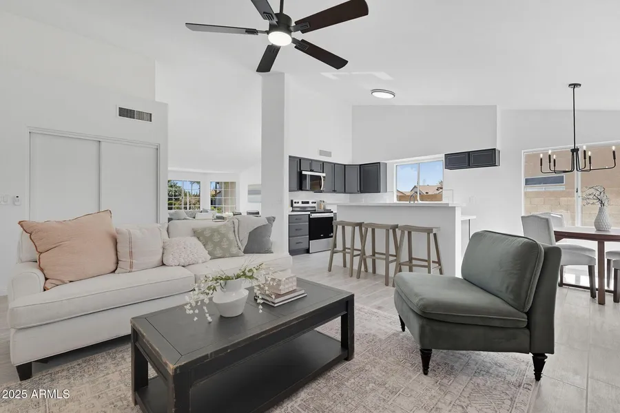 Welcome to this refreshed 3 bed, 2 bath home offering a perfect blend of comfort & style. With fresh paint inside & out and new wood-look tile flooring throughout the main living areas. Step into the living room featuring a cozy fireplace w/ a tile surround. The updated kitchen is a chef's dream, showcasing custom shaker cabinetry, quartz countertops, a tile backsplash, stainless steel appliances & a kitchen island. All the bedrooms include new carpet, while the primary suite offers a peaceful retreat w/ a walk in closet & a en suite bathroom complete w/ a new dual-sink vanity, quartz countertops & modern finishes. Outside, enjoy Arizona living at its finest w/ a covered patio & a resurfaced PebbleTec pool. Plus a NEW Water Heater!