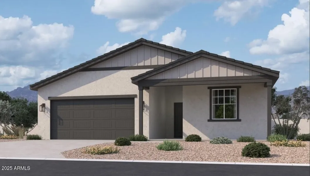 Fall in love with the Sage Floorplan, a beautifully designed home offering 2,150 square feet of modern comfort and functional living. With 4 spacious bedrooms, 3 full bathrooms, and a 3-car garage, this home perfectly blends style, convenience, and versatility for today's lifestyle. The split layout provides privacy and flow, creating ideal separation between the primary suite and secondary bedrooms. A versatile den with its own full bath serves as the perfect guest suite, home office, or multi-generational space, offering flexibility to suit your family's needs. At the heart of the home, the gourmet kitchen shines with 42'' grey shaker cabinets, elegant quartz countertops, 7x22 tile flooring, and stainless steel appliances, including a refrigerator, washer, and dryer- all included for your move-in convenience. The kitchen opens seamlessly to the dining and great room areas, creating an inviting open-concept design that's perfect for entertaining, family gatherings, or relaxed evenings at home. A 4-panel sliding glass door leads to the covered patio, extending your living space outdoors and providing the perfect setting for backyard barbecues or peaceful morning coffee. With smart design elements, upgraded finishes, and thoughtful details throughout, the Sage Floorplan is built to enhance everyday living. Offering a harmonious balance of comfort, sophistication, and function, this home truly embodies modern living at its finest. Discover the Sagea home where every detail has been carefully considered to make life beautiful.