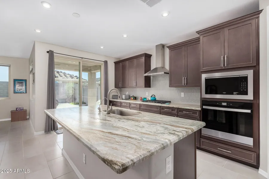 Welcome to your like-new home in the highly sought-after Estrella Mountain Ranch community! This stunning residence blends modern style with thoughtful upgrades throughout. The heart of the home is the upgraded kitchen, featuring sleek finishes, beautiful cabinetry, high-end stone counters, and a spacious island perfect for entertaining. Step outside to your private backyard retreat, complete with lush turf, fresh landscaping, and custom pavers-designed for easy maintenance and year-round enjoyment. Whether hosting gatherings or enjoying quiet evenings, this outdoor space is ready to impress. Nestled in Estrella Mountain Ranch, you'll also enjoy access to incredible community amenities, scenic trails, lake access, and the lifestyle this premier neighborhood is known for.
