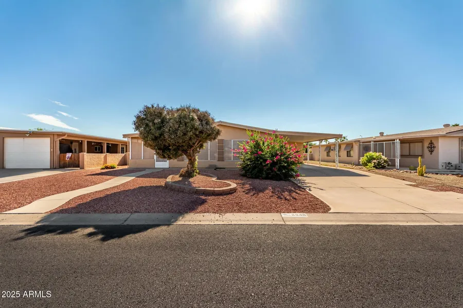 Step into your ideal 55+ lifestyle w/ this 2-bed/2-bath home in Sun Lakes Golf Community! This home features inviting wood-look floors, wet bar for entertaining, lg family room, & updated kitchen w/ white cabinetry & SS appliances. The primary suite delivers dual sinks & double sided walk-in closet. Interior laundry w/ built-in cabinets & office nook, plus a covered 2-car carport w/ bonus storage room/workshop. The real jewel is the community: access to multiple golf courses; tennis, pickleball & bocce courts; heated pools, spas; walking, biking & lakeside trails; clubhouses w/ fitness centers, ballroom events, dining spots; arts & crafts, hobby & game rooms and dozens of social clubs & activities. Sun Lakes is more than a home-it's a full calendar of fun & connection every day.