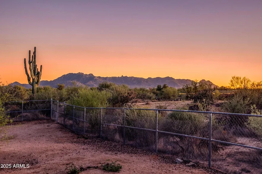 Seller wants this SOLD! Unbeatable Scottsdale Value! Discover this luxury desert retreat on over an acre with a 4-car garage and breathtaking mountain views all for under $800K! Opportunities like this are rare act fast before it's gone!Experience the perfect blend of modern luxury and tranquil desert living in this exceptional 4-bedroom, 2-bath home. Built in 2021, this nearly new residence offers 2,311 sq. ft. of thoughtfully designed living space on a picturesque 1+ acre homesite, surrounded by open skies and natural beauty. Step inside to find an open-concept floor plan ideal for entertaining. The gourmet kitchen features granite countertops, double ovens, a 36'' gas cooktop, built-in microwave, farmhouse sink, walk-in pantry, and sleek stainless-steel appliances all complemented by designer cabinetry and lighting. The primary suite is a serene retreat with a spa-inspired bath, featuring a soaking tub, separate shower, dual granite vanities, and an expansive walk-in closet. Every detail reflects quality craftsmanship, from 2x6 construction and upgraded doors to satin-nickel hardware, two-tone paint, and ceramic tile in all the right places. Energy-efficient Low-E dual-pane windows, front and rear covered patios, and a spacious laundry room add comfort and convenience. The oversized 4-car garage is fully insulated walls, ceiling, and door and includes a dedicated mini-split HVAC system, making it perfect for a workshop, gym, or collector car storage. This home represents the ultimate combination of luxury, functionality, and Arizona outdoor living offering peaceful privacy just minutes from Scottsdale amenities. Hurry this unique desert gem won't last long! **Most furniture is available under a separate bill of sale/ Property boundary extends beyond western fence.
