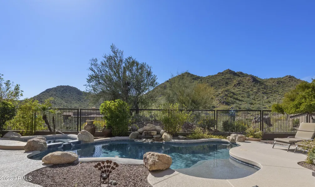 VIEWS, VIEWS, VIEWS**Furnished Rental** AVAILABLE SPRING OF 2026 - home owner prefers 3 month rental. This gorgeous home + casita in gated Hidden Hills is nestled into the McDowell Sonoran Mountain Preserve. The property features 4 bedrooms (including casita) and 4.5 baths, 2-car garage, heated pool and breath-taking views! The large kitchen has granite countertops, stainless appliances and is open to the family room. Each bedroom has ensuite bathroom and split from other bedrooms for ultimate privacy. The open floor plan is great for entertaining or vacationing with your family. The property is spotlessly clean and freshly painted. Easy access to hiking, restaurants, shopping, hospitals & more!
