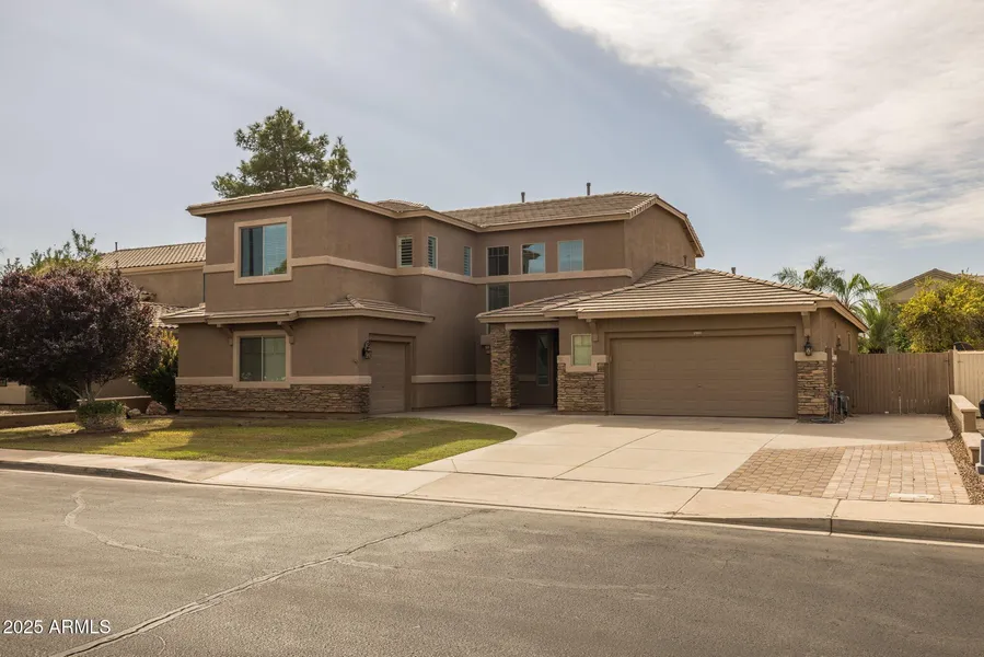 This turnkey 4-bed+loft, 2.5 -bath home is ideally located and move-in ready! Step through the front door to discover soaring vaulted ceilings, abundant natural light, and fresh interior paint (2024). The front living area offers a flexible layout-perfect for a formal living and dining room or to customize to your needs. Continue to the spacious kitchen featuring SS appliances, oversized island, new granite counters, sink, faucet and R/O (2024), and walk-in pantry. The kitchen opens to a generous great room w/ a newly redesigned entertainment niche and direct backyard access. The main-level primary suite offers comfort and convenience with new plantation shutters, a walk-in closet, and an en-suite bath complete with a private water closet, dual-sink vanity, and separate shower and tub... Upstairs, the loft provides versatile living spaceideal for an office, playroom, or potential additional bedroom. Three additional bedrooms and a full bathroom are located on this level as well. Out back, enjoy a perfectly sized play pool and spa (pool filtration system rebuilt in 2025) featuring a waterfall, basketball hoop, and flagstone seating area. Relax under the shaded covered patio for year-round enjoyment. Additional highlights include an extended-length 3-car garage and a large laundry room with extra storage. Close to the 202 Freeway as well as many dining and shopping options nearby.