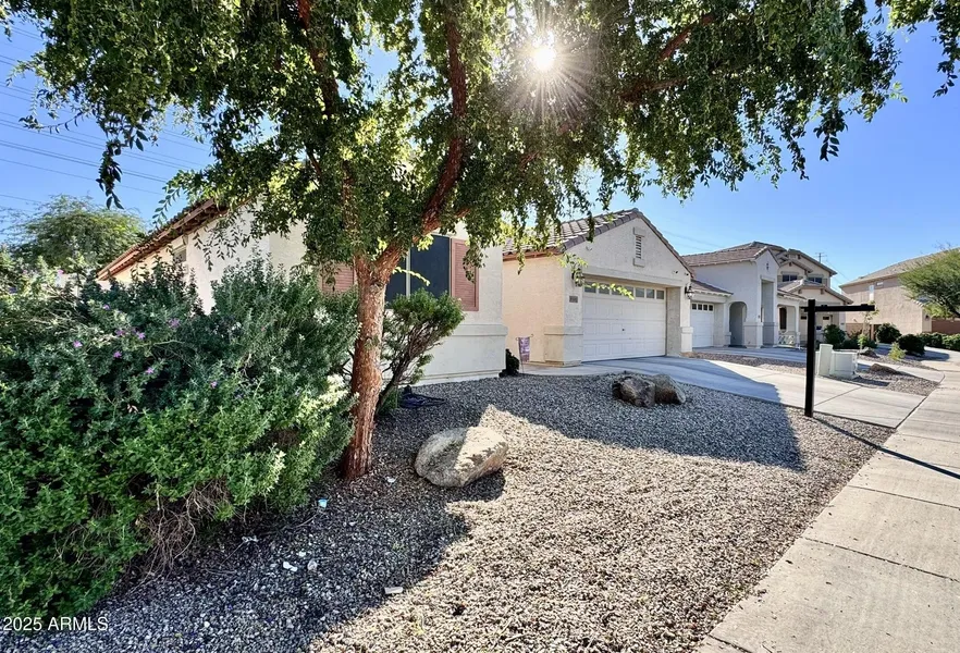 Modern style meets everyday comfort in this beautifully updated 3 bed, 2 Bath Tolleson home. Enjoy a spaciously oversized living area just off the gourmet style kitchen. The new Samsung fridge will convey with home. The interior is newly painting, including the classy black doors with their elegant brushed gold hardware. Backyard overlooks a peaceful walking path, perfect for morning runs or evening strolls with your pup. Recent updates includes: Custom sunscreens on all windows, hot water heater, roof inspection & tile/cap updates, kitchen fixtures & appliances, master bath shower, vanity lights in both bathrooms, new toilets, flooring throughout living room and bedrooms, epoxy garage flooring, ceiling fans and hardware and outlets throughout. This home is move-in ready and full of cha