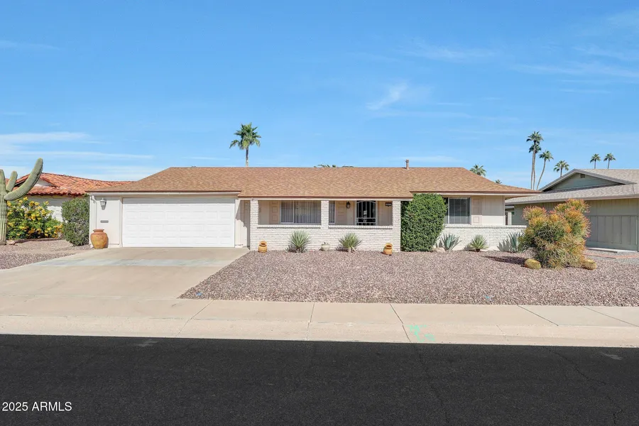 This Home Offers Features And Updates That Make It Truly One Of A Kind In Sun City! Originally A 2-Bedroom, 1-Bathroom Home, It Has Been Beautifully Transformed Into A Spacious 3-Bedroom, 2-Bathroom Retreat Designed For Comfort And Style. As You Step Through The Front Door, Your Eyes Are Immediately Drawn To The Sparkling Backyard Pool Complete With A Built-In Hot Tub And Surrounded By A Cool Deck Patio That's Perfect For Relaxing Or Entertaining. A Full Primary Suite Has Been Added, Creating A Desirable Split Floor Plan With The Guest Bedrooms On The Opposite Side Of The Home. The New Primary Bedroom Is Generously Sized, Featuring A Vaulted Ceiling And Peaceful Views Of The Pool. The Primary Bathroom Showcases A Beautifully Tiled Shower, While The Guest Bathroom Includes A Tub For Added Convenience. Inside, The Living Space Feels Open And Connected. The Wall Between The Kitchen And Living Room Has Been Removed, Creating A Bright And Welcoming Flow. The Kitchen Has Been Fully Updated With Stylish Cabinets And Granite CountertopsThe Perfect Place To Gather And Enjoy The Heart Of The Home. Every Update Was Made With Comfort And Function In Mind, Making This Home A Rare Find In Sun City. Come Experience It For Yourself!
