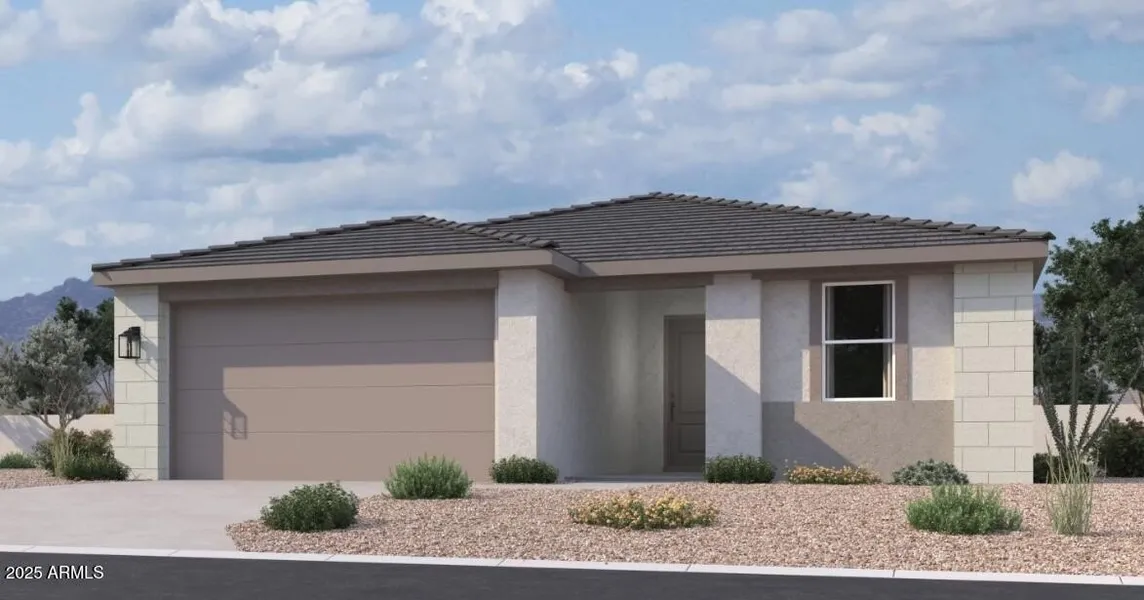 Brand new community in North Peoria! Beautiful 3 bedroom/ Den/ 2 bath home with 2 car garage located at the Retreat at Aloravita. Estimated completion Feb. 2026. This well-thought-out single-story home has great curb appeal with a beautiful modern desert exterior, front desert landscape and paver driveway. The open concept kitchen is perfect for entertaining and features a large Island, walk-in pantry and stainless steel appliances with gas range. It also offers our Industrial Collection which includes gray 42'' cabinets, quartz kitchen countertops, brick tile backsplash, and 7x22 wood look tile in all common areas. The great room has a 4-panel sliding glass door, perfect for indoor/outdoor living! The primary suite has a spacious walk-in closet, double sinks with quartz countertops, and large walk-in shower. This home also includes a refrigerator, washer/dryer, and interior blinds making it move in ready. Great location close to dining, freeways, parks, and entertainment!