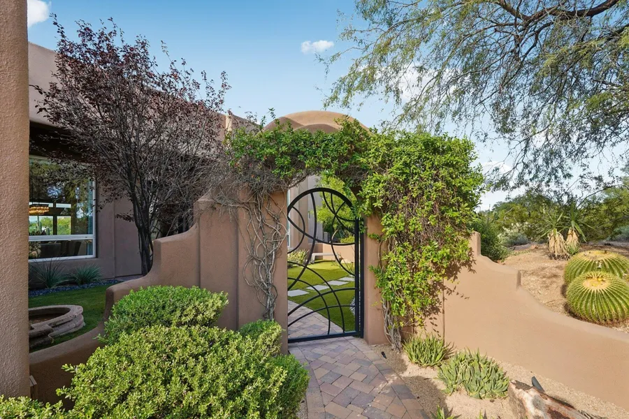 Experience timeless desert luxury in the prestigious gated enclave of Sincuidados, where serenity, sophistication, and nature converge! This beautifully updated single-level custom estate welcomes you home through a private gated courtyard oasis with a striking custom designed 12' glass and iron door into the light-filled living spaces adorned with soaring 14—16' coffered ceilings with elegant architectural detail. The great room's custom fireplace wall and oversized glass doors create a seamless connection to the resort-style backyard. The chef's gourmet kitchen showcases the finest grade granite countertops, Dacor appliances, and a skylit design that enhances every culinary moment. The sprawling and luxurious owner's suite features dual dressing closets, spa bath, and a private gym or office. Practice on the putting green, or take in panoramic sunsets from the rooftop view deck. Sincuidados residents enjoy exclusive access to the scenic Lone Mountain Preserve, along with tennis, pickleball, and tranquil desert trailsall within one of North Scottsdale's most private and sought-after communities.