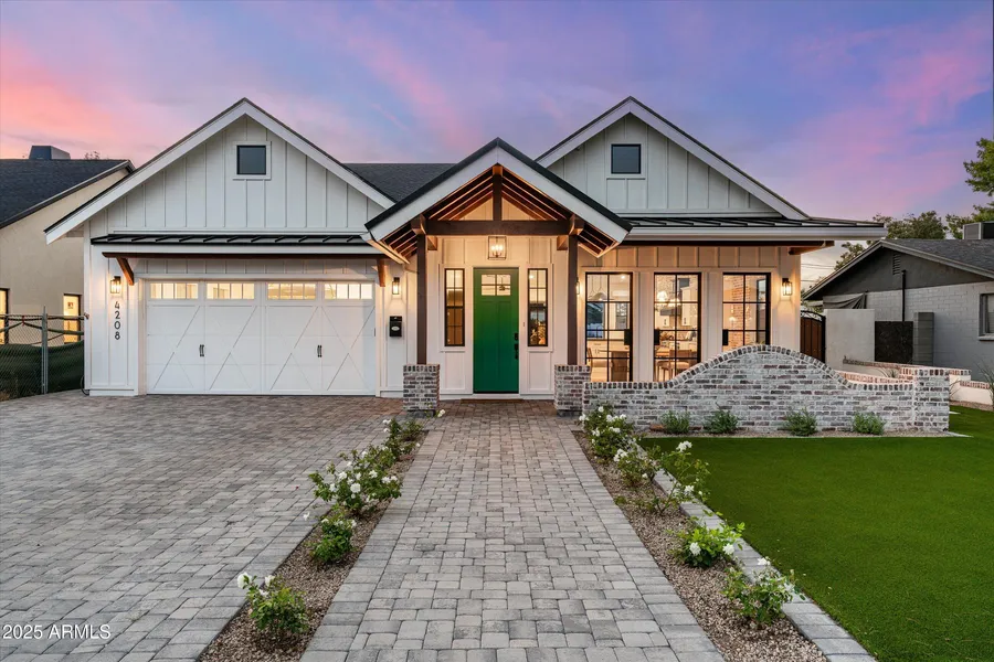 Spectacular Arcadia home that perfectly blends luxury, comfort, and efficiency. With 4 spacious bedrooms and 3.5 bathrooms, the open-concept layout highlights vaulted ceilings, an expansive great room, and a chef's kitchen centered around a large island. Beautiful iron doors off the dining room open to the front patio, while a full-width sliding glass wall opens to the back-creating seamless indoor-outdoor living perfect for entertaining. The fully finished basement offers an incredible retreat complete with a projector movie room, pool table area, and wet bar. A full bedroom and bathroom downstairs make it ideal for guests or extended family. Designed for both comfort and entertainment, this space is perfect for movie nights or weekend gatherings. Outdoor living is exceptional on this large 12,000+ SF lot, featuring a built-in BBQ, multiple gas fire pits in the front and backyards, and plenty of space to add a pool. The yard includes mature citrus trees, an automatic watering system, and optional flood irrigation - creating lush landscaping and the perfect setting for year-round entertaining. In addition to the attached two-car garage, there's a detached two-car garage ideal for a workshop, gym, or creative studio. The structure is engineered to support a rooftop patio, offering potential for an elevated outdoor lounge with stunning views of Camelback Mountain. The primary suite features a spacious walk-in closet, large windows, and a private patio retreat. This home combines thoughtful design, solar-assisted HVAC, and modern technology throughout delivering the best of Arcadia living with style, efficiency, and space to enjoy every day. An absolute must-see!