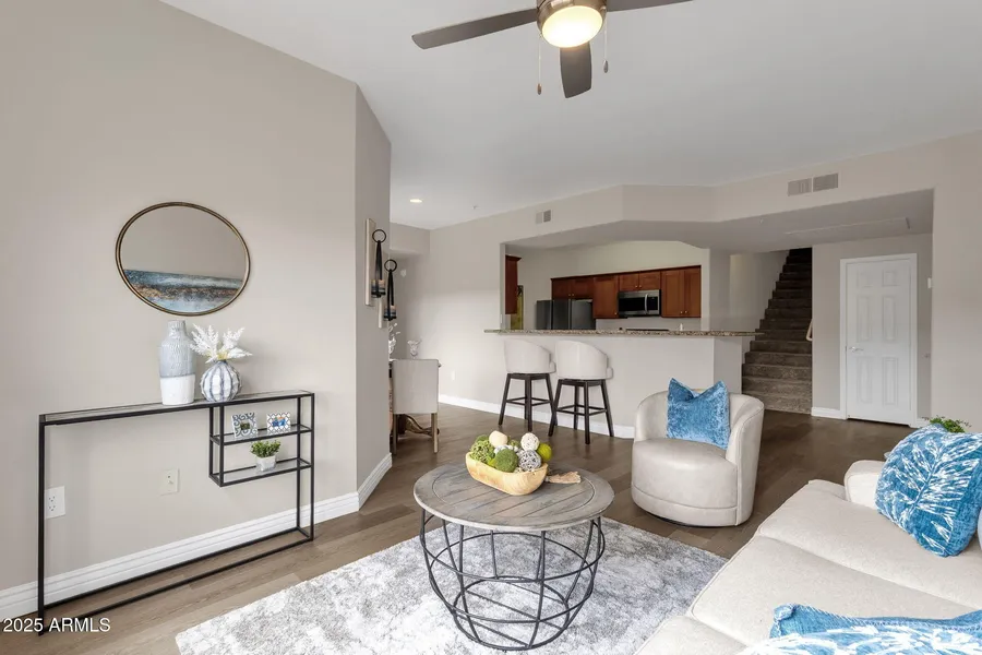 Modern Comfort Meets Desert Views at Four Peaks Vista! Welcome to this inviting 2-bedroom, 2-bath Townhome offering 1,207 square feet of beautifully designed living space in the sought-after Four Peaks Vista community of Fountain Hills. Step inside and enjoy sweeping mountain views from your living space, complemented by a smart Nest thermostat and a direct-access garage for ultimate convenience. The kitchen features stainless steel appliances and a ceramic tile backsplash, bringing both style and practicality to your daily routine. Residents of Four Peaks Vista enjoy resort-inspired amenities, including a sparkling pool, soothing spa, and fully equipped fitness center-perfect for staying active or unwinding in the Arizona sunshine. Nestled in the heart of Fountain Hills, this location places you minutes from local dining, shops, and the iconic Fountain Park. Enjoy low-maintenance living with a low monthly HOA fee that covers community upkeep and amenities, giving you more time to soak in the views and lifestyle you love.