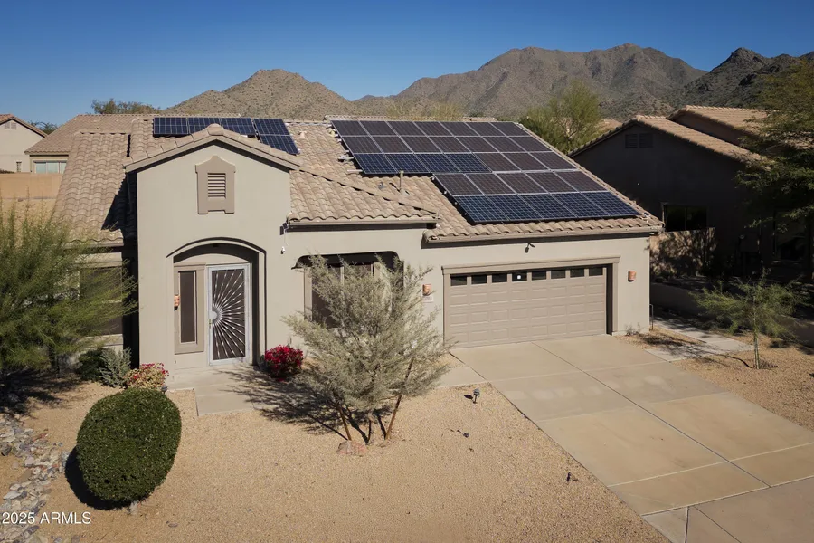 First viewings start Dec 21 2025 from 1-4PM. Stop by and enjoy the great room and split floorplan of this 3 bedroom home in gated McDowell Mountain Ranch. Upgraded granite, tile flooring throughout, solar panels are owned free and clear, tankless water heater, 9ft flat ceilings, low maintenance desert front and back yards. Video shows the Community Clubhouse, swimming pool and surrounds parks, library, schools and surrounding lilfestyle of McDowell Mtn Ranch.