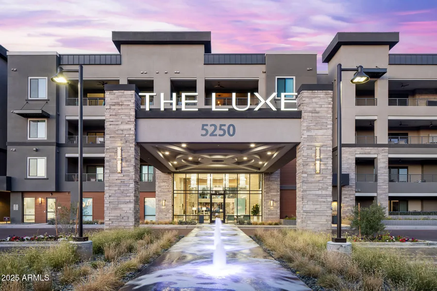 Welcome to a sophisticated lifestyle at The Luxe. This meticulously appointed third-floor center unit with stunning mountain and city views is nestled in North Phoenix's premier luxury condominium community by the desirable Desert Ridge/High Street area. Combining modern design with upscale finishes and access to five-star amenities, this Dior model offers the perfect blend of convenience, elegance, and comfort with prestige and privacy - this is The Luxe at its finest. Step inside this stunning open-concept residence and immediately feel the difference in quality. The spacious great room showcases clean architectural lines, and seamless indoor-outdoor flow with sliding glass doors that lead to a private terrace with plenty of room for entertaining, built-in BBQ and scenic views. [more] Anchoring the living space is a sleek linear fireplace providing warmth and ambiance at the touch of ...