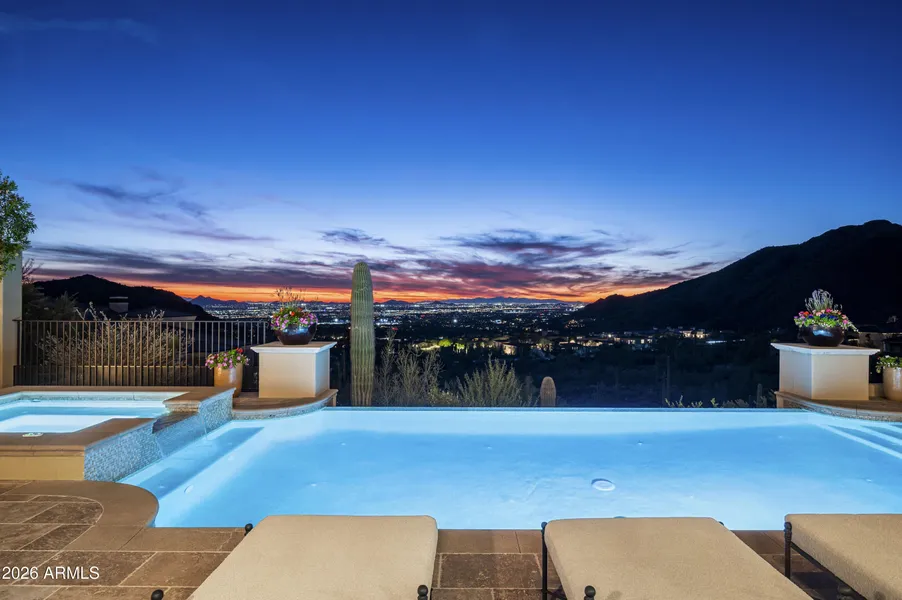 Renowned for its exceptional architecture, breathtaking views, and unparalleled lifestyle, the prestigious Silverleaf community sets a standard of excellence-one this remarkable residence fully embodies. The home commands one of the most extraordinary, completely unobstructed views in Silverleaf, delivering dramatic vistas along the expanse of the home. Approached by a graceful, tree-lined drive, the 8,303-square-foot Salcito Custom Home is framed by lush, mature, and colorful landscaping that perfectly complements its exquisite architectural design. Upon entry, the eye is immediately drawn to the expansive views and abundant natural light, creating a striking sense of arrival. Thoughtfully designed for both comfort and functionality, the main level hosts the primary living spaces, including the living and dining rooms, family room and kitchen, office, theater, master sitting room, and three bedrooms. The lower level is reserved for a spacious guest suite and a versatile pool cabana. Pool cabana can also be a 5th ensuite bedroom. Throughout the home, sophisticated finishes reflect a timeless, classic elegance equally suited for refined entertaining or relaxed everyday living. Outdoor living spaces are beautifully enhanced by curated landscaping and multiple intimate venues, ideal for enjoying vivid sunsets, brilliant city lights, and the tranquility of surrounding mountains. This exceptional estate offers the ultimate in luxury, and resort-style living, evident in the photos and video, truly your own private sanctuary.