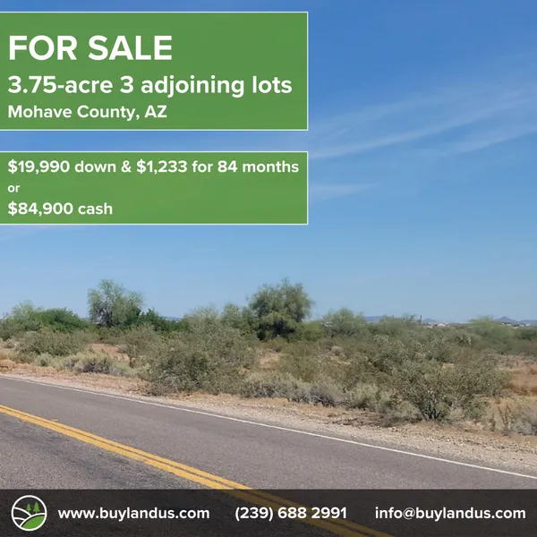 This 3.75-acre lot is waiting for your dream! Located in Mohave County just minutes away to Phoenix, AZ. This deal will not last long. Different payment options available.