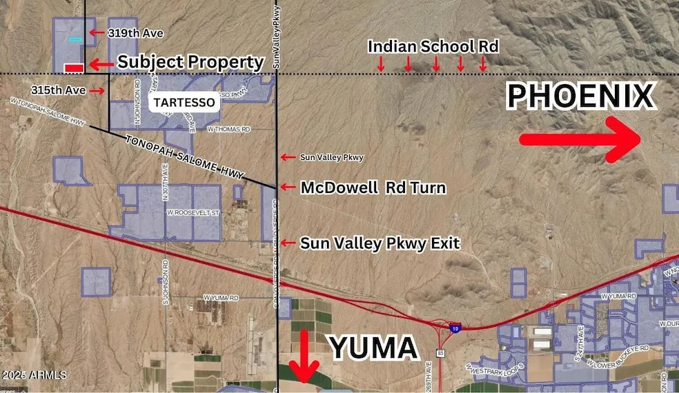 Research Parcel InformationHeaded West on the I-10, take exit North onto Sun Valley Pkwy, West onto McDowell Rd, North onto 315th Ave, West onto Indian School Rd to 319th Ave. Lot is on NW corner of Indian School & 319th Ave.