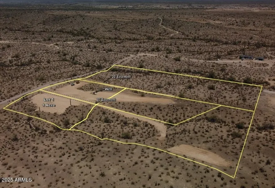 Beautiful panoramic view of the white tank mountains. Shared well with servicing four lots. Very few neighbors. Great location for a custom home. Located near I-10 and the masterplan community Belmont. Underground power on property line (Highland Ave). Property tax shown is for 5 acre parcel before minor land division. No HOA and plenty of room for Horses, Toys & RV parking.