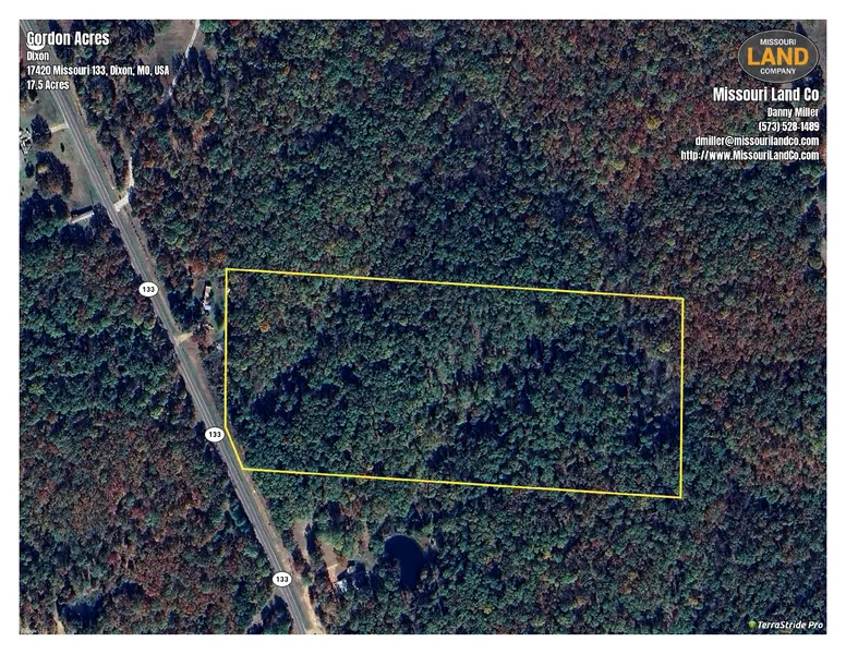 Rural Maries County Missouri timber covered tract. Lays well with a great oak covered ridge for your new home or getaway cabin. Wet weather stream crosses the Northeast corner of the property, two valleys that could provide a location for your fishpond. The property was selectively logged several years back, leaving a good amount of white, red, and post oak for mast production. Would not be hard to fill your Deer tag here next fall and the property borders a large track of timber to the north.& Located seven miles North of Dixon, MO., with easy access off paved Hwy 133. Electric available. The buyer is required to pay for survey that will provide for seventeen- and one-half acres being offered. Aerial mage provided with outline is approximate boundary for the acreage to be sold.Maries County tracts don&t last long.