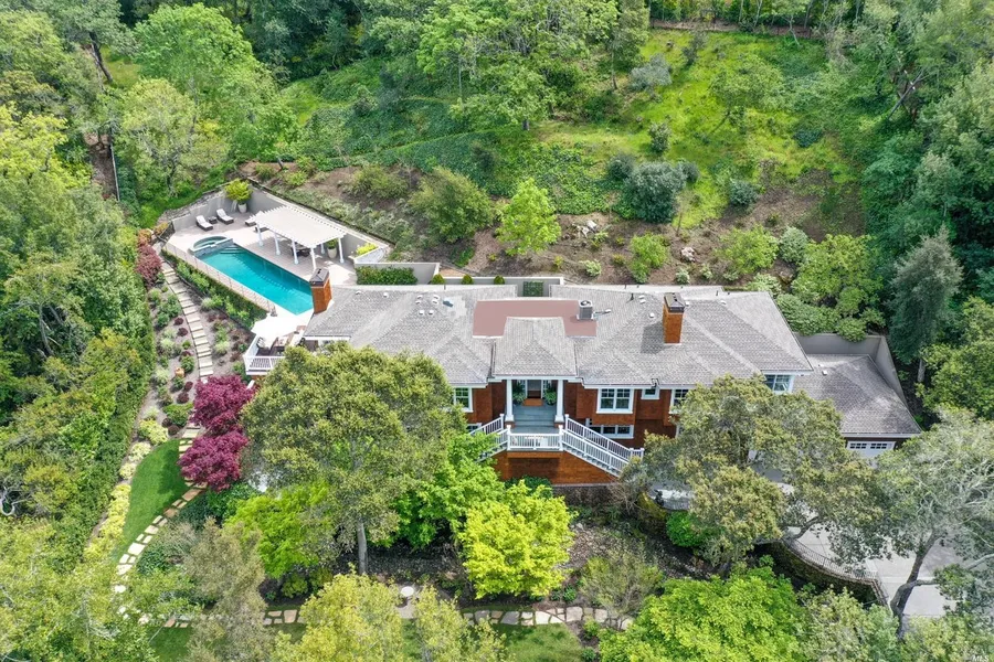 The spirit is elevated from this highly coveted position in one of Marin's most prestigious enclaves. The magnificent domain basks in daily serenity and privacy amidst rich abundant flora, as intended by its inhabitants. Remodeled and updated with first class, fine quality designer materials, appointments and craftmanship, the stunning residence is ideally situated on a 1+ acre site. Reflecting distinctive pride of ownership, it is presented and maintained to an exceptionally high standard. The professionally landscaped, manicured grounds offer diverse possibilities for extensive outdoor activities for all ages and include a delightful seasonal creek, terraced gardens, manicured lawn, bluestone walkways and an impressive pool with spa. The premier location is just minutes to bike paths, hiking trails, shopping at Marin's premier grocery store Woodlands Market'', and a host of leading res...