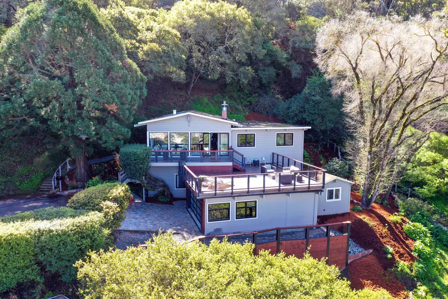 A recent high-end renovation thoughtfully transforms this Mid-Century Modern home built by notable Sausalito builder and master craftsman, Ken Elkington. The open beam Great Room has vaulted ceilings, beautiful hardwood floors, modern fireplace, wall of glass with expansive Bay and Mount Tam views, and huge outdoor entertaining areas. The exceptional Chefs kitchen features beautiful custom cabinetry, Caesarstone counter tops, The Galley sink system, and a large center island. Kitchen is well equipped with a Wolf 6 burner range, steam oven/microwave, induction cooktop, Sub-Zero refrigerator, and Miele dishwasher. Also on this main floor are the principal bedroom, guest room, two baths and the perfect work-from-home office. Downstairs you will find a spacious family room, brand new stunning bath with huge walk-in shower and laundry, and a guest room plus bonus room with custom built-in Murphy beds. There is also an oversized two car garage, a workshop area, and storage shed. This great property has much to offer.