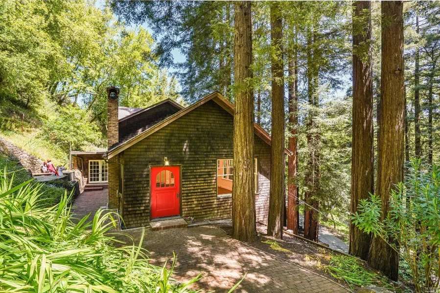 Privacy, Peacefulness, Plenty of parking. A grand and purposeful structure on a six parcel lot. This architectural gem is surrounded by over an acre of private serene wooded land, yet 5 minutes to bustling San Anselmo and Fairfax. Three full bedrooms and 3 full baths (part of which is the complete in law unit suitable for company or income). Uniquely situated for a majestic zen lifestyle with quick access for hiking and biking, right out your door. An exhilarating balcony oversees the distinctive vaulted ceiling great room; rumored to have hosted the creative inspiration of Marin's hey dey musicians. A Maybeck style historic property, built with integrity and purpose. Scenic sunlit outdoor patio with brick fireplace, abounds with flowers and hillside views. The large covered separate carport can handle six cars with more parking up top. The potential here is boundless. Take the magical step forward to experience a true diamond in the rough and make it yours to enjoy forever.