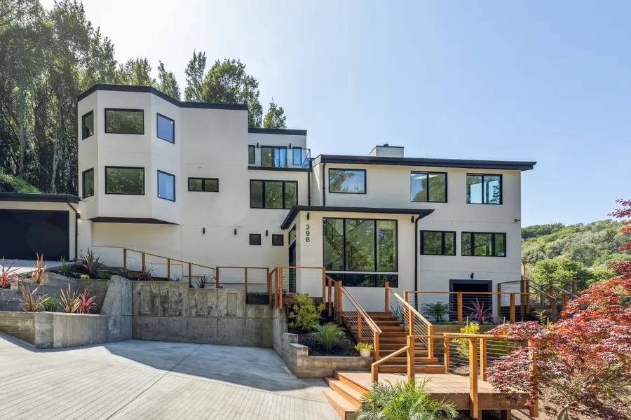 Welcome to 398 North Ferndale Avenue, a striking, fully rebuilt contemporary residence nestled in the heart of Mill Valley’s sought-after Homestead Valley neighborhood. Perfectly positioned on a private, gently sloped lot spanning nearly 1.5 acres, this extraordinary home embodies modern luxury, architectural sophistication, and serene indoor-outdoor living.