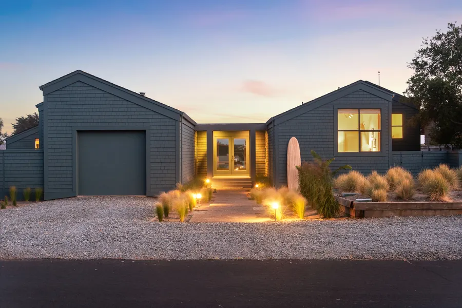 The attached garage offers easy storage for bikes, boards, and beach gear as well as plenty of space for the kids to unwind, gather to play games, or bunk together in the cozy loft for sleepovers. A modern chef’s kitchen, designed for entertaining, has stunning views of Mt. Tam and opens directly onto the wind protected side patio. The open-concept dining and living areas invite true indoor-outdoor living and sunset views year-round.