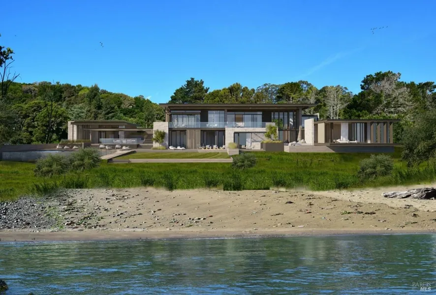 This is a once-in-a-lifetime opportunity to acquire a 7+ acre beachfront trophy property with permit-pending *Approved Plans* for a 5 bedroom, 7 bathroom, 7,300 SF luxe home + a spectacular 1 bedroom, 1 bathroom guest house. Located in highly prized Tiburon CA and in one of Southern Marin's most sought-after neighborhoods, this inspired Californian Modern home was imagined by esteemed architect Sean Bailey who has designed the most elegant glass, cedar, stone, and steel cutting-edge gated luxury estate. With an abundance of naturally occurring level land, the indoor-outdoor living is extended throughout the space with the creation of multiple seamless patios, decks, and outdoor living rooms. This one-of-a-kind modern and luxurious private beachfront estate redefines Bay Area living. Approved amenities include an infinity pool and spa, a yard for play, private auto-court for ample parking, and a spacious 3 car enclosure. A truly unique opportunity offering the most compelling lifestyle.
