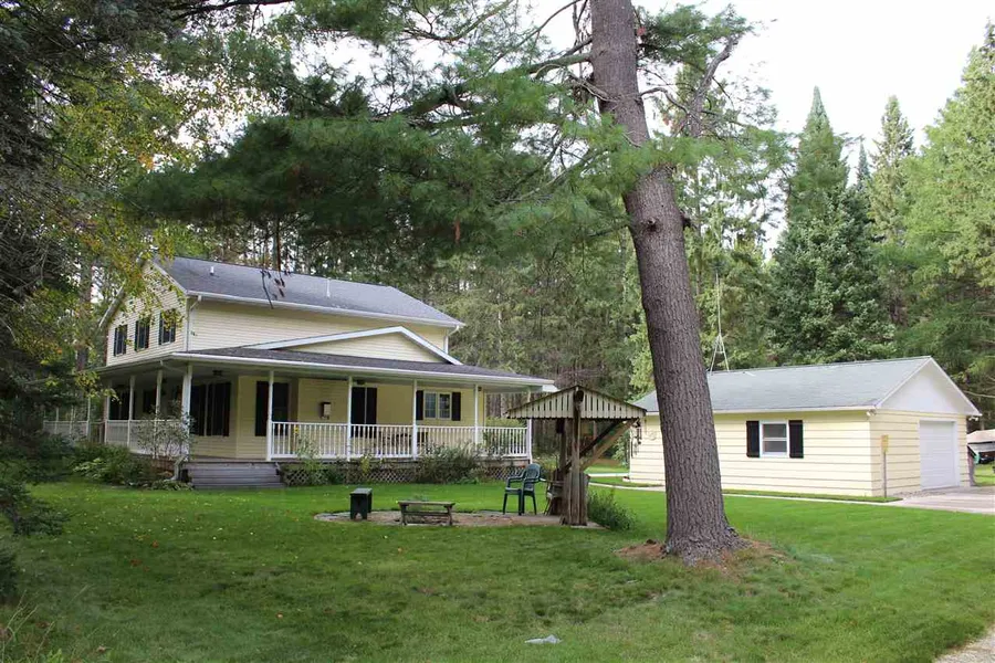 Nature Lovers Dream on 3.6 wooded fenced acres! Kitchen boasts granite countertops, dining area, and full appliances package! Check out the Fieldstone fireplace in the living room with south facing windows, and maple hardwood floors throughout! Main Floor master suite with dual closets, and enormous bath! 3 oversized bedrooms and full bath complete the upstairs! Large dry basement for finishing! Step outside into paradise with mature trees, firepit, deck, & Wraparound porch. Drive out your driveway onto the ATV and Snowmobile Trails, or Kayak down the Peshtigo River, this home has it all!