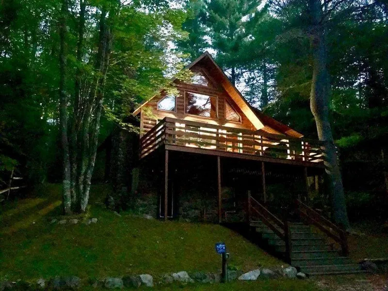 Peaceful is and understatement for this secluded log cabin in the woods. When you imagine the perfect cabin set up this is it! Listen to the chirping birds and rain drops on the covered porch, Warm up to a crackling fire in the fieldstone fireplace or just turn off the world and sleep in all day in the open concept loft. Spend your evening on the towering deck watching the wildlife pass through the yard, roast the perfect marshmallow or grill out on the backyard firepit. Swim and fish the near-by lakes, canoe,kayak or trout fish the areas rivers and streams. Once here you won't want to leave!