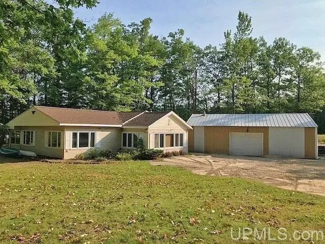 Tranquil lake views await on this 5+ acre parcel! A great opportunity to own a 2 BR home on 5.09 acres with a private pond and on 171 acre Town Corner Lake, one of the largest lakes in Marinette County. Features an open concept KT/DR/LR. Office/den, 3 season room, and mudroom. Offers a scenic view from almost every window in the house! Large 40 x 30 det. garage. Sheds for extra storage. The patio offers a nice scenic view of the lake; a great place to hang out after a long day of playing on the lake and the ATV trails. All located on a 5.09 wooded acre parcel for seclusion, private pond, and with approx. 395 of frontage on the lake. And it's within an hours drive from Green Bay. Full recreational fun all year long!
