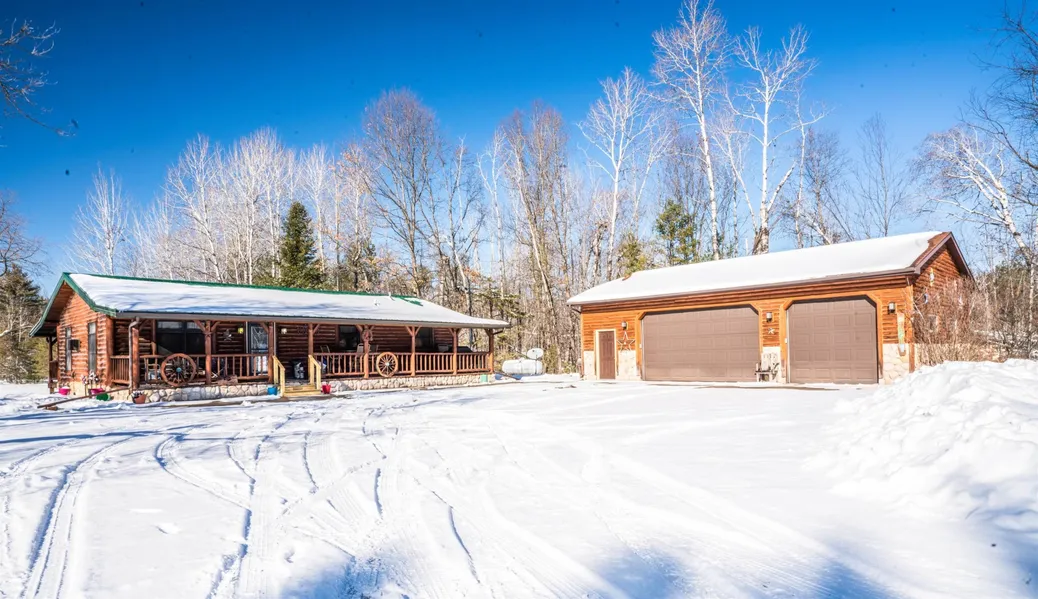 Looking to escape to the Northwoods? This one of a kind, custom built log home is nestled on 37 Acres(p/assr) of some of Mother Nature's finest, and provides the perfect blend of seclusion with quick and easy access to town. With over 2,100 sq ft, a spacious walk out basement, covered porches on front & back, large detached garage, small pond, and endless wooded trails to explore, this property has everything you could ask for in your Northwoods home! A few big ticket items have been updated over the last few years, including a newer water heater, and a brand new metal roof! This property and surrounding area provides an ideal environment for whitetail deer, turkey, and other wild game to thrive year round. please note, Basement bathroom and laundry area does not have finished ceiling.