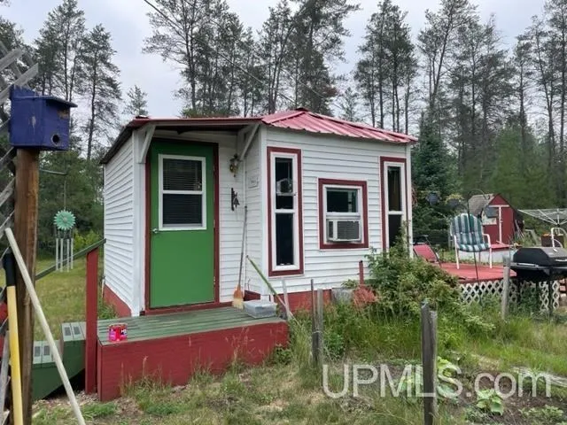 Northwoods tiny home living! This cozy well kept home with newer siding, roof, windows, and more... has everything you need. 1 bedroom, full bath, laundry, dining nook, mudroom area, and office space. Deck for outdoor entertaining. Gas space heater and a wood stove for ample warmth in the winter and window a/c unit for summer cooling. Private backyard with a garden and shed. 10x16 workshop with workbenches and heat.