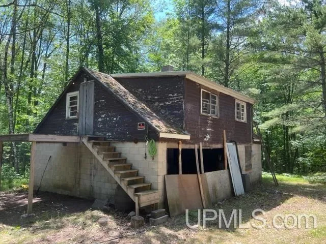 A scenic setting for a new home build or use currently as a sportsman’s base camp. Perched upon a hill is this 9+ wooded acres with a building site cleared and has electricity and a sandpoint well to hook up a camper/RV. Outhouse. The cabin offers a kitchen/dining area with a separate bedroom on the upper floor heated with woodstove or lp space heater. Lower level used as a large storage area/garage. Trails throughout the 9.59 acres for easy access for hunting and includes all the deer stands! As an added bonus it has deeded access to 19 acre Cotas Lake. Located on a dead-end road for seclusion, public County Land just ½ mile away, and offers ATV trail access. A hidden gem in the Northwoods!
