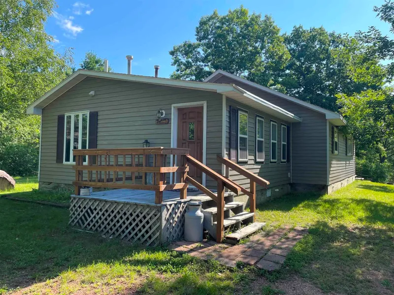 Nearly 7 acres in the country on a wooded lot with mature trees and a pond for a backyard view. 3br, 1 bath with open concept kitchen, living and dining area with a sunporch with spectacular views of the scenic backyard. Main floor laundry. 24x40 garage w/1/2 bath, & 18x20 lean-to. Access to ATV/Snowmobile trails from the property. The property is served by a sand point well and there is a drilled well on the property ready to be hooked up. The drilled well was drilled for the pond, but is no longer hooked to the pond as it is spring fed and sustains itself.