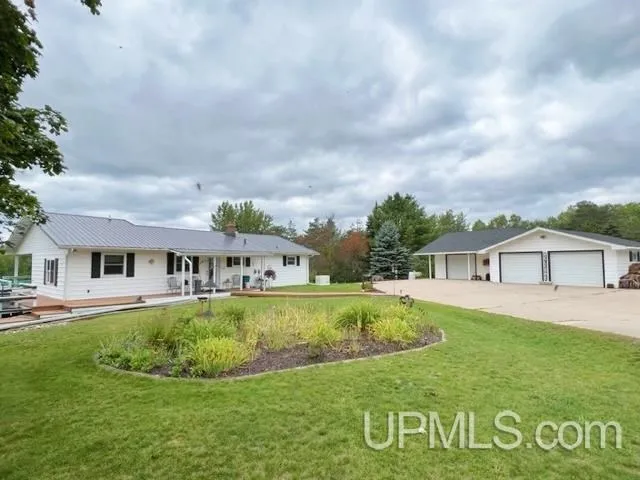 Sprawling 5 BR, 3 BA renovated ranch on 2+ acres in the country. Est.Sq.Ft. 2,240. Features 4 BRs and 2 baths on the main and boasts an open-concept LR/DR with patio doors that leads to the wrap-round deck, above ground pool, and a covered back porch area to watch the wildlife. Full walkout bsmt with large 30 x 14 family room, 5th BR, and ½ bath. Accessibility features. Pellet stove. New Generac whole house generator. Many updates over the past 10 yrs: metal roof, windows, water heater, septic system, deck, flooring, and it’s freshly painted. Clean 26 x 26 two car det. garage, 22 x 20 workshop, and 16 x 12 shed for all your storage needs. Beautifully manicured 2.15 acres highlighted with perennial flowers. And it’s in a great location; within 1/2 mile to a public boat landing on the Menominee River, close to two golf courses, and there's ATV/snowmobile trail access right outside your doo...