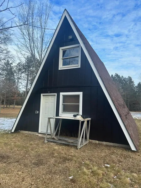 A-Frame building that has electricity and water outside of the building. At the moment is one big room with a patio door. There is an upper level that can be made into a loft area. There is a parcel next door, with a house, that is also for sale.