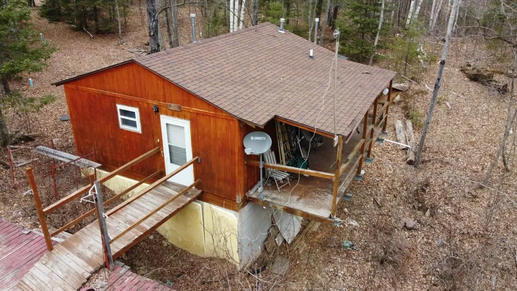 Here's an Up North get away for yourself with room to house friends & family. The main 1 bed 1 bath 588sf cabin has a walk-out full basement. Built in 2015, the interior was never completed. The 450sf A-frame has a loft and full walk-out basement along with an old detached shower house. Plus, there's a rustic, one room bunkhouse out back. The 4 car garage/workshop has 3 OH doors & plenty of storage & workspace. The 9+ acres are all wooded with a mix of high and low land covered with pine, maple, balsam, aspen and cedar. Located on a town road that is ATV accessible. Yes, this is a project property & there are many things that need to be updated. Drilled well & conventional septic. F/A furnaces in both cabin & A-frame. Bunkhouse is unheated. Close to lakes, rivers & public lands