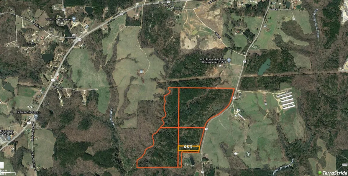 103 +/- Ac just minutes outside of downtown Haleyville, Alabama. The property was cut several years ago and replanted back with pine. The pines were replanted between 10-12 years ago. There is a portion of the property that is clear cut. The clear cut areas would be ideal for replanting back in pines, adding a few greenfields, or future homesites. There is water and power located at the road. There is a great opportunity to add to the existing road system. There is one pond located toward the main entrance. A beautiful creek runs throughout the property providing drinking water to the wildlife that lives on the property. A lot of deer sign was found on this property. Marion County is known for its excellent deer and turkey hunting. If you are looking for a great hunting property, property to build a home, or a property for future propertylook no further!